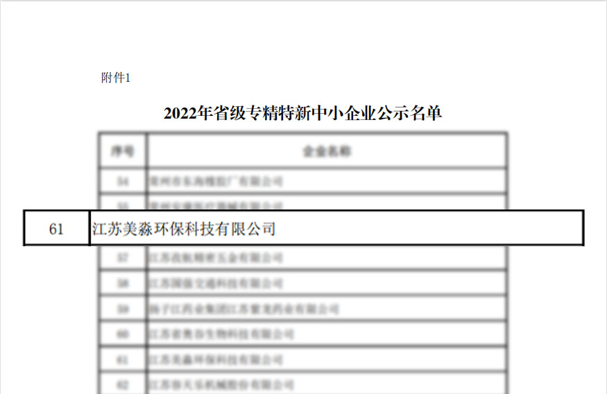 喜報丨美淼環保入選首批江蘇省2022年專精特新中小企業